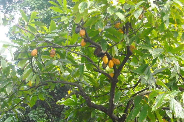Aussi appelé cacao ou cacaotier, le cacaoyer est un petit arbre à feuilles persistantes du genre Théobroma de la famille des Sterculiacées, selon la classification classique, ou des Malvacées, selon la classification phylogénétique. Ses fruits servent à faire du chocolat et du milot. Il est cultivé dans la région des plateaux.